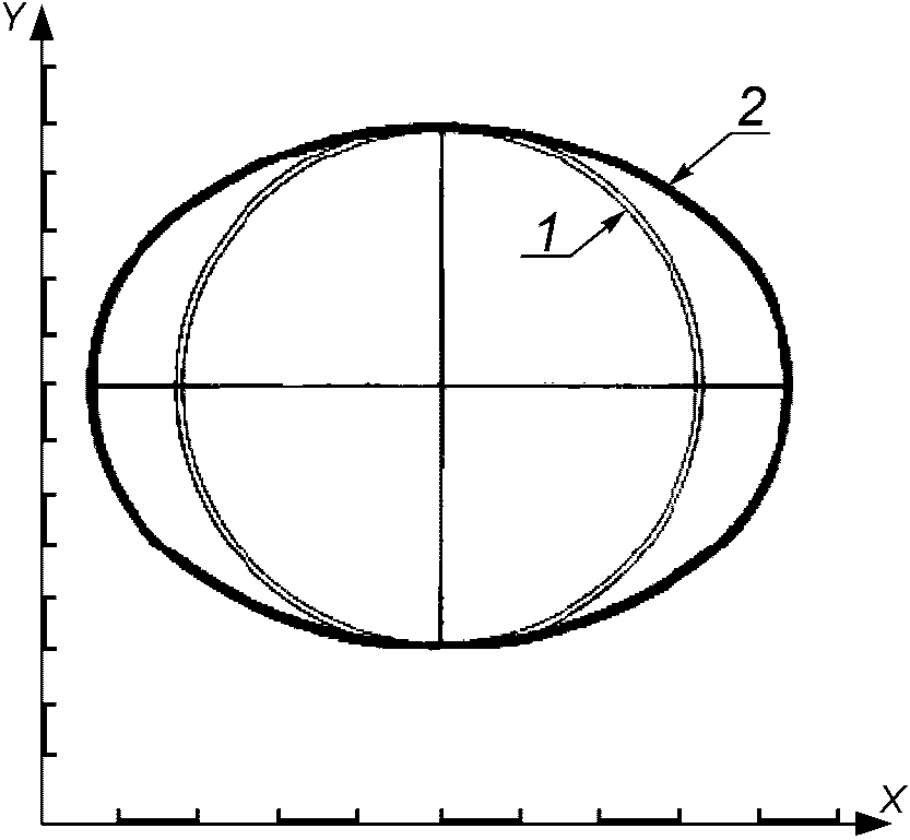 Y не имеет отклонений, тогда круговая траектория принимает форму эллипса и его наибольший диаметр становится параллельным оси