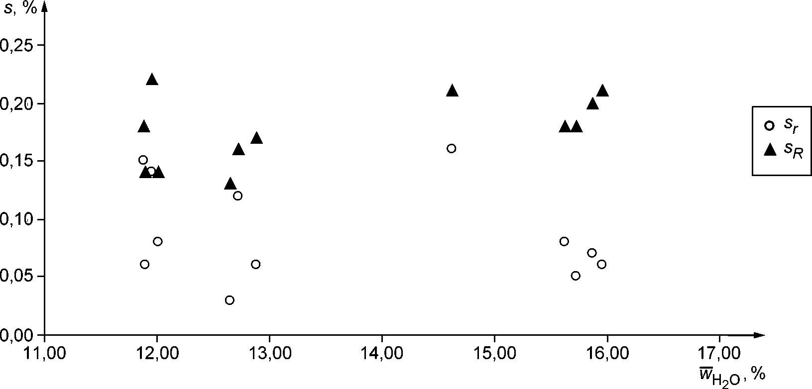 Стандартное отклонение воспроизводимости sR, % | 0,18 | 0,22 | 0,13 | 0,16 | 0,21 | 0,18 |
