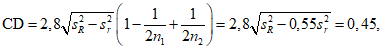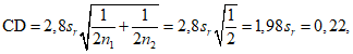 Критическая разность (CD) между двумя средними значениями, полученными по результатам двух определений в условиях повторяемости, определяется по формуле