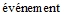 T003 | event | A nonpersistent, time-based occurrence. | ![]() | Une manifestation ponctuel. | Событие | Метаданные для события предоставляют информацию о цели, месте, продолжительности и ответственных лицах. Примеры: выставка, сетевое вещание, конференция, семинар, день открытых дверей, представление, битва, судебное разбирательство, свадьба, чаепитие, пожар. |