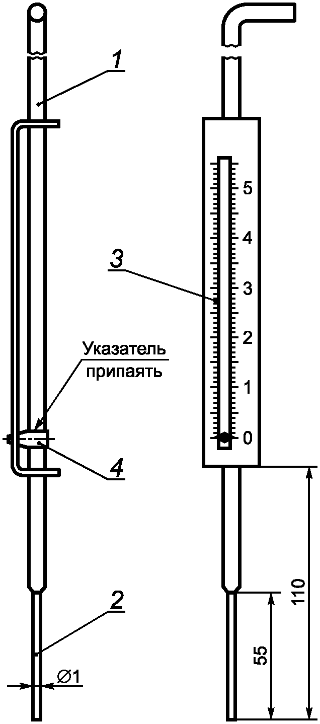 1 - стержень; 2 - игла; 3 - шкала; 4 - указатель