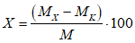Массовую долю висмута в пробе X, %, вычисляют по формуле