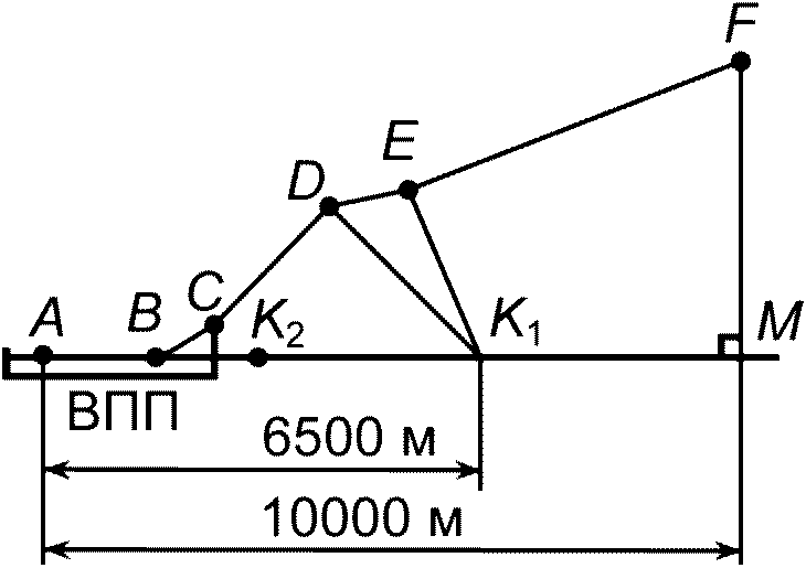 - контрольной точки под траекторией взлета - это точка на продолжении осевой линии ВПП, на расстоянии 6500 м от начала разбега;