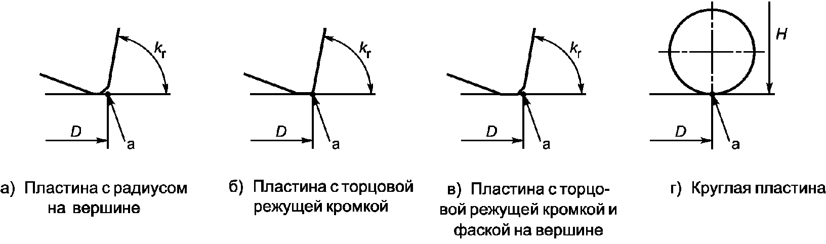 a в зависимости от формы сменных режущих пластин указаны на