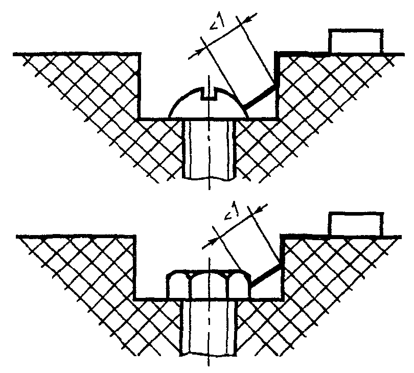 Рисунок Д.9 | Щель между головкой винта и стенкой впадины слишком узка и не принимается во внимание. |