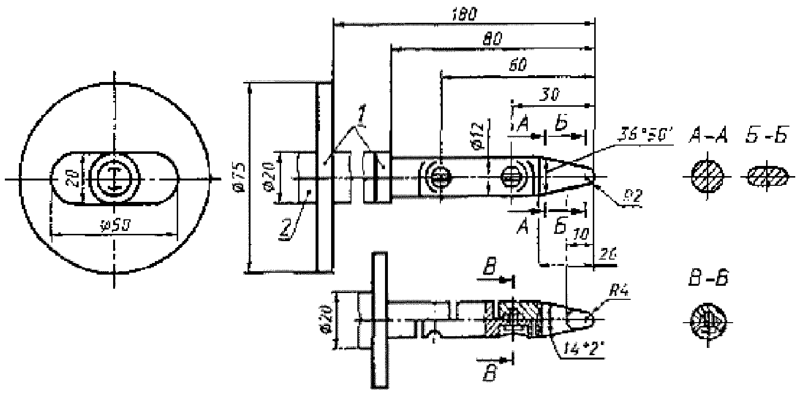 1 - выходной конус; 2 - стержень спускового механизма;