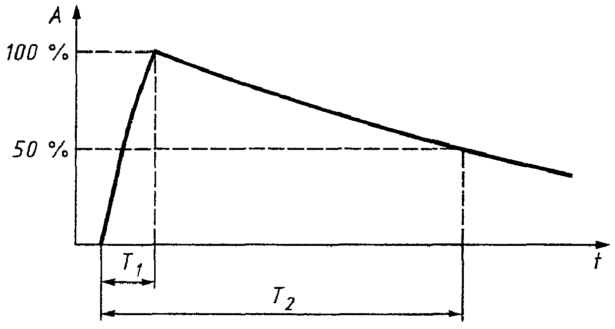 T1 - время фронта; T2 - время полуспада