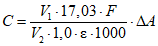 где V1 - общий объем раствора в кювете, равный 3,08 см3;