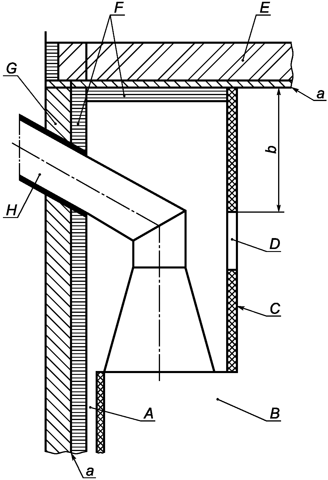 E - потолок; F - изоляция; G - стенка испытательного угла;