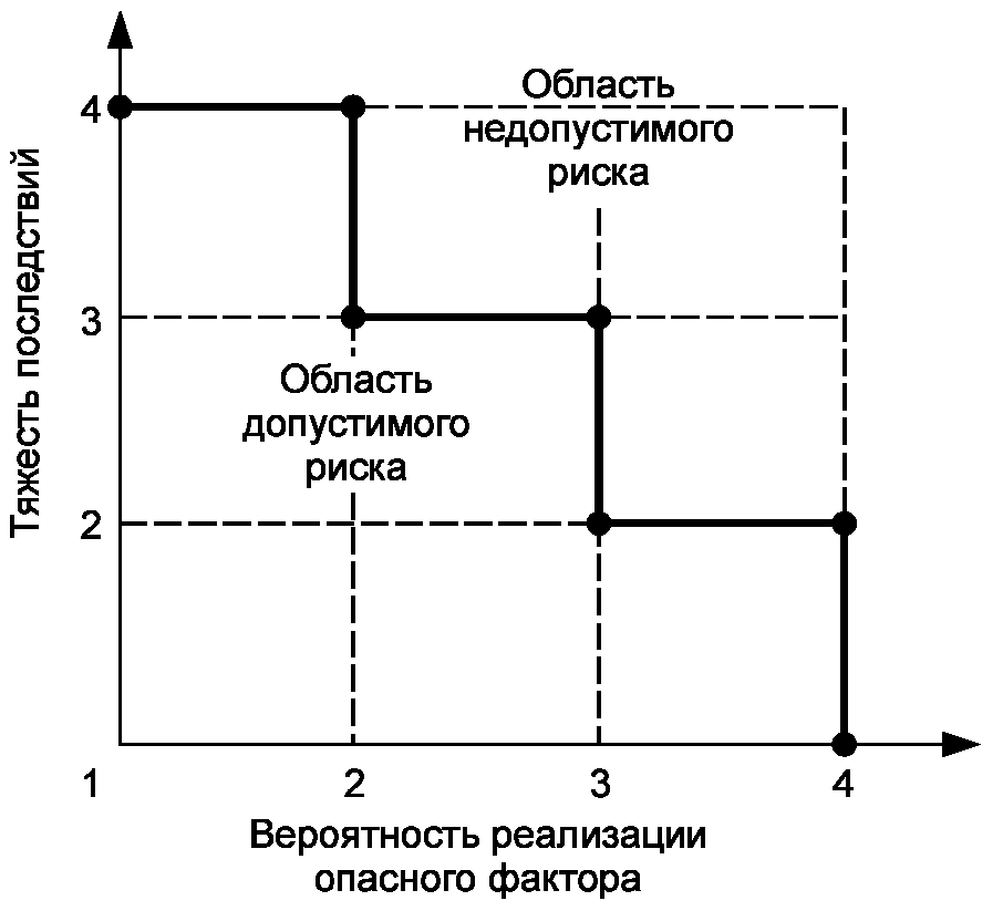 Учитываются те опасности (опасные факторы), оценки рисков которых находятся на границе и в области недопустимого риска.
