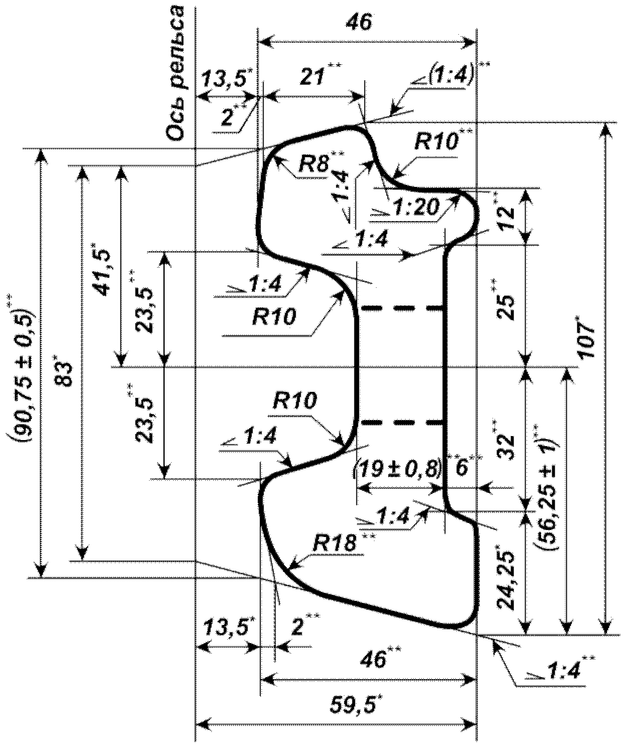 4.1. Конструкция и размеры накладок для рельсовых стыков должны соответствовать указанным на рисунках 1 -