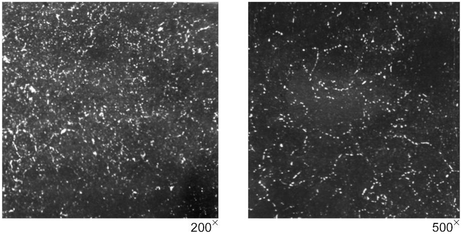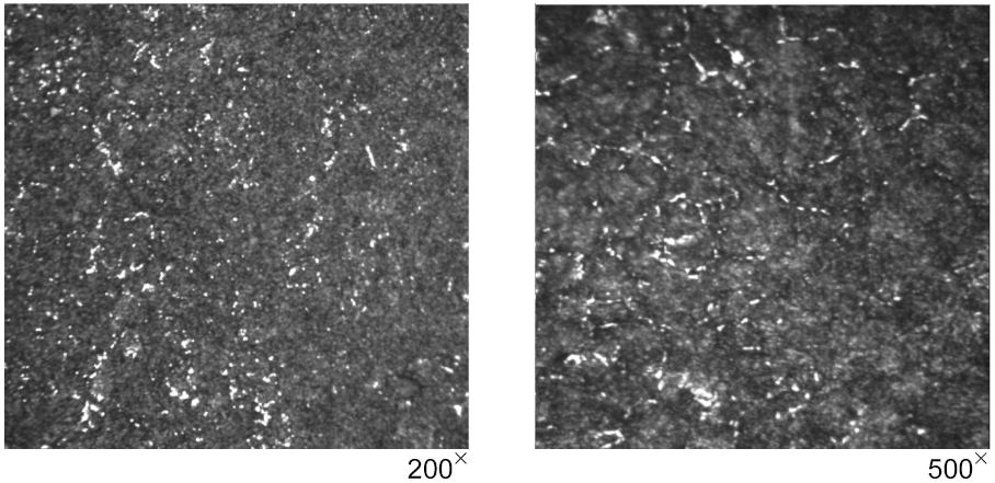 Участки остаточного аустенита, занимающие более 10% площади поля, видимого в микроскоп при увеличении 200x.