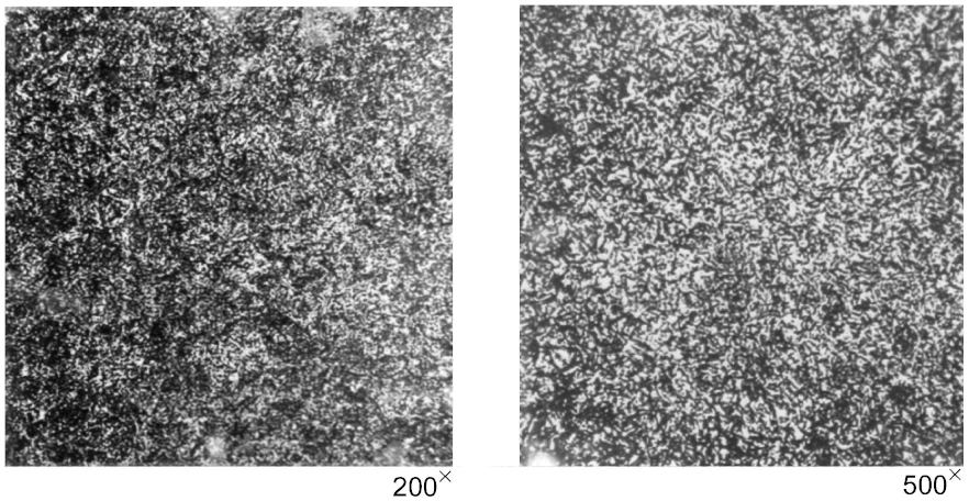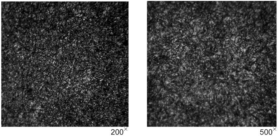 Мелкоигольчатый мартенсит и участки остаточного аустенита, занимающие 10% и менее площади поля, видимого в микроскоп при увеличении 200x. Предельно допустимая структура слоя.