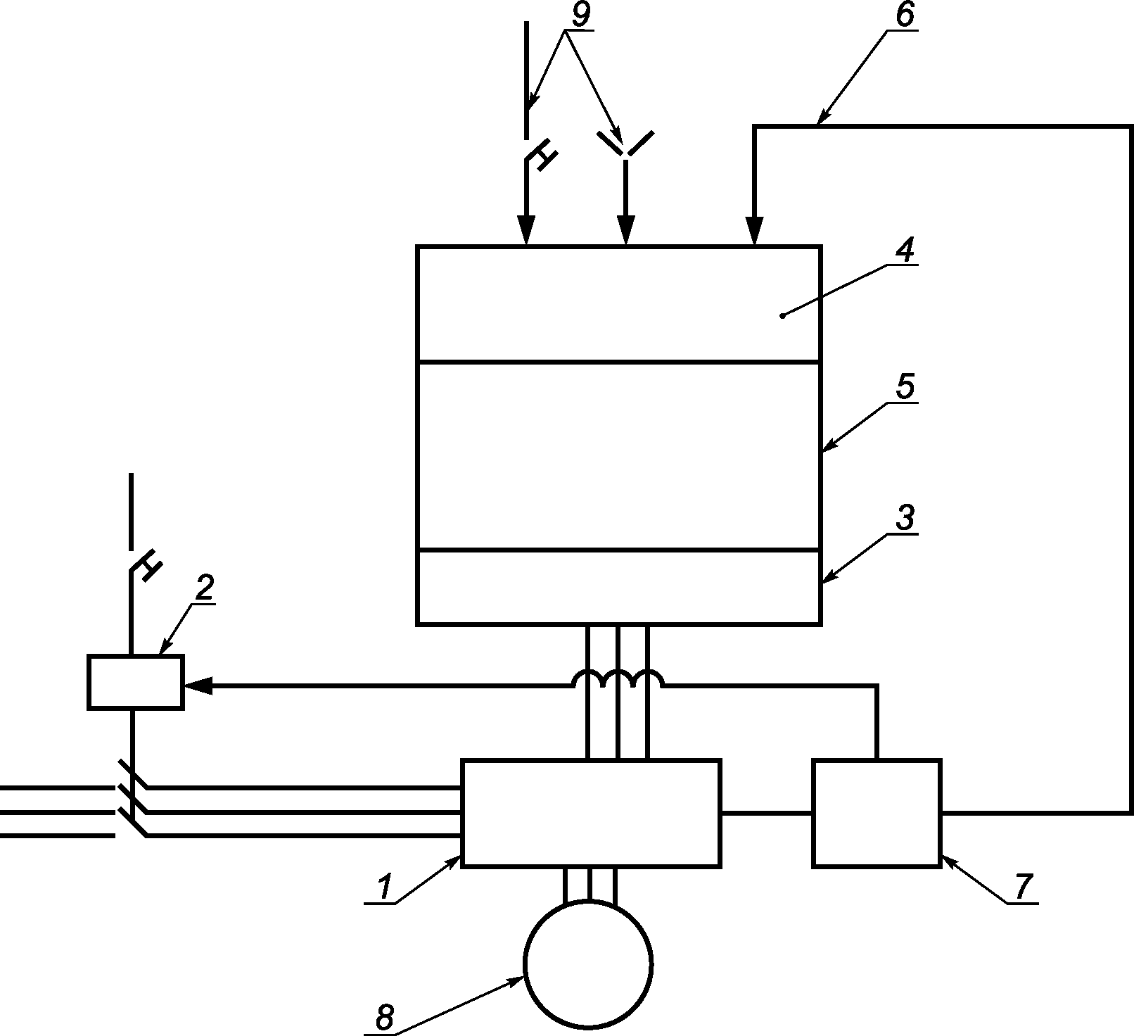 2 - преобразователь; 3 - электродвигатель;