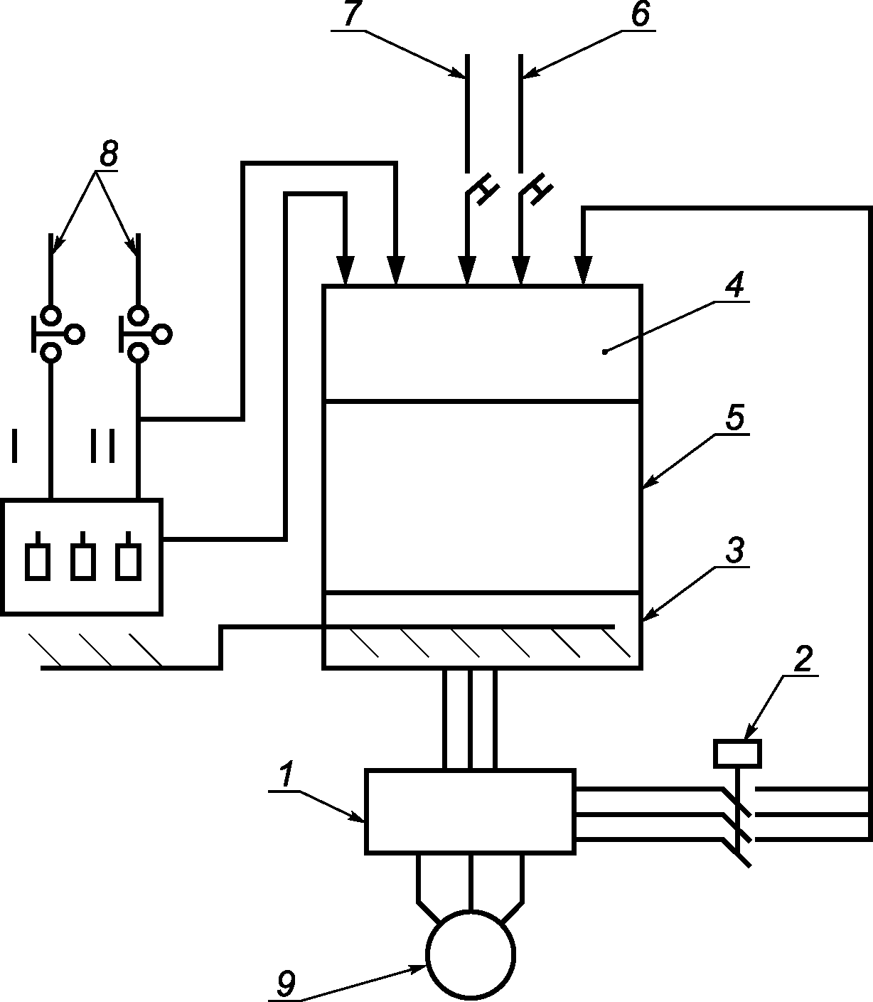 6 - остановка; 7 - пуск; 8 - блокируемое ограждение;