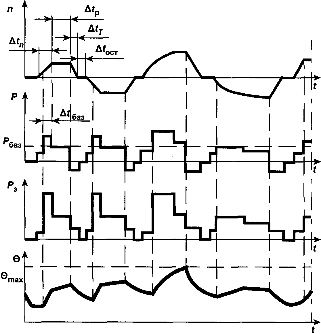 - разница между превышением температуры обмотки при каждой из различных нагрузок внутри одного цикла и превышением температуры при базовой нагрузке в режиме