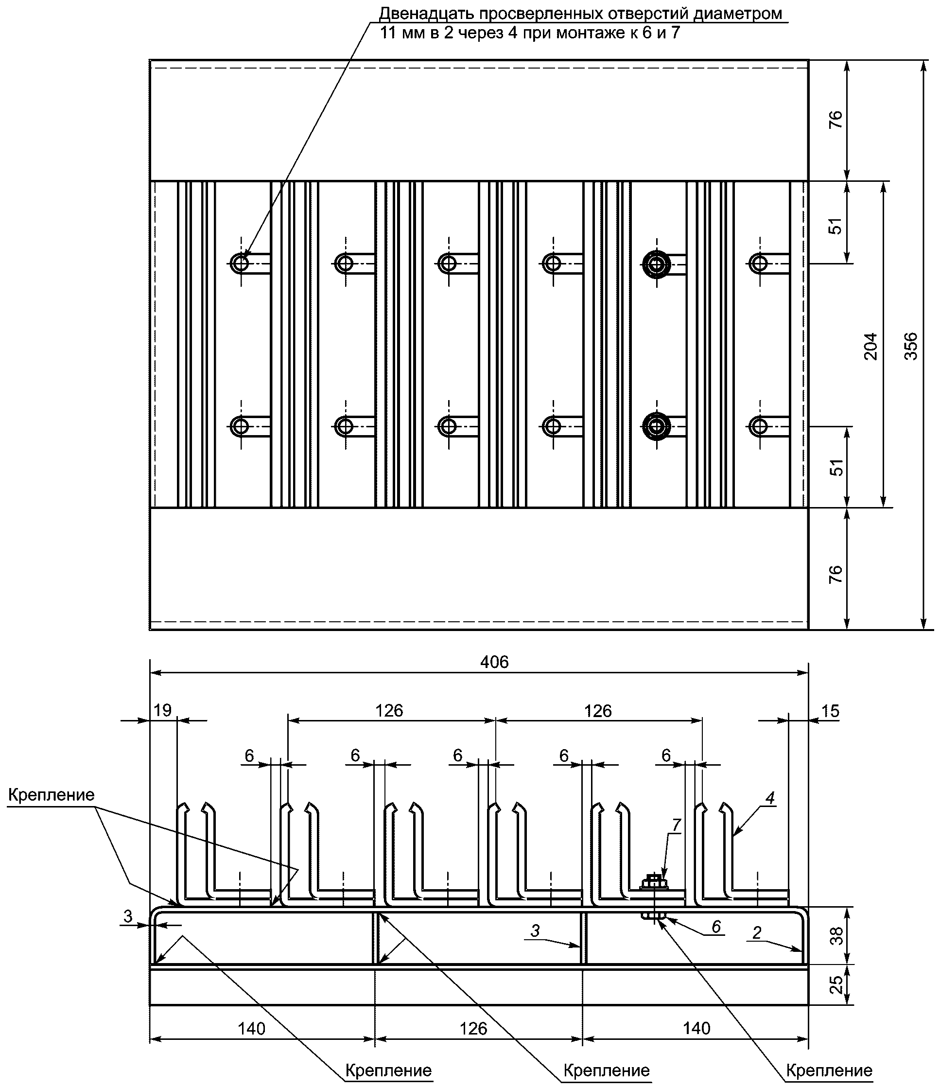Для монтажей с сердечниками с ободами осевые ребра жесткости стальной пластины прерывают для имитации местной нагрузки на обод катушки.