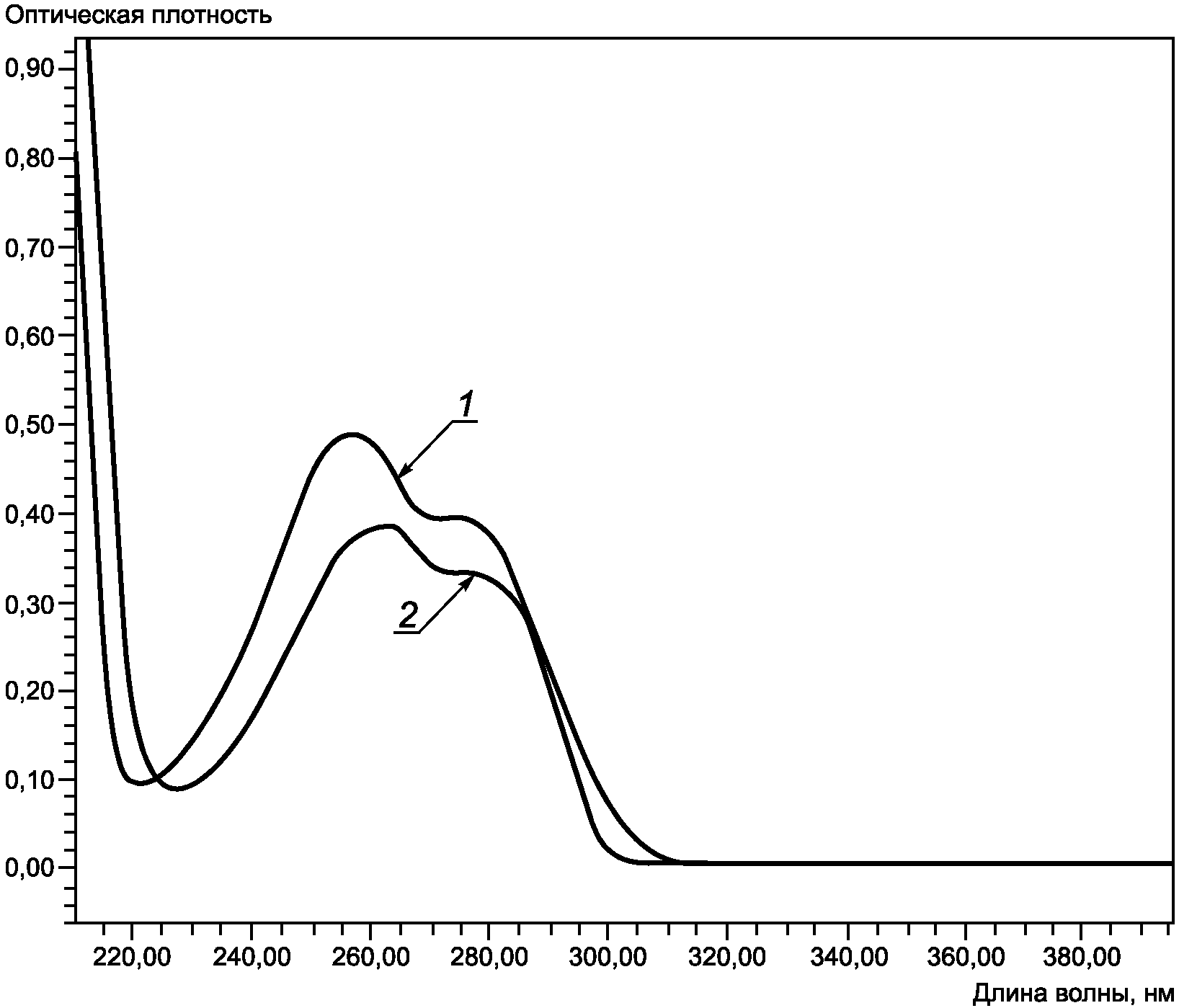 1 - УФ спектр BTA; 2 - УФ спектр TTAA