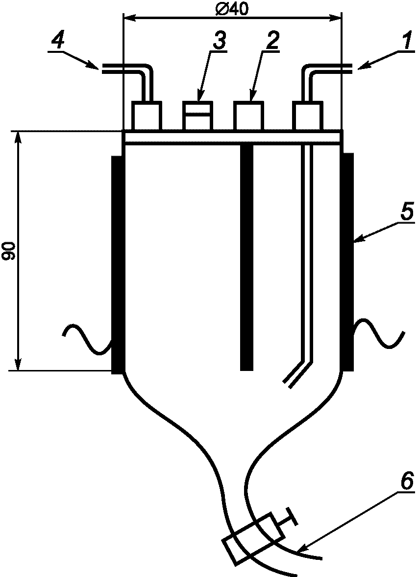 Сосуд для титрования имеет конфигурацию электролитической ячейки с двумя отделениями, разделенными пористой перегородкой. Анодное отделение содержит смесь растворителя (реактива) и пробы (анодный раствор), а катодное отделение (сборка генератора) содержит безводный реактив (катодный раствор). По обе стороны пористой перегородки расположены электроды для электролиза.