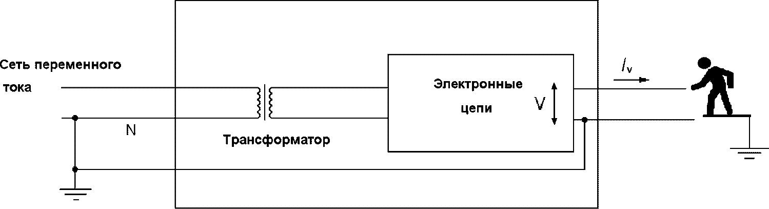 В перемещаемом оборудовании вероятность поражения электрическим током увеличивается из-за возможного дополнительного натяжения шнура электропитания и, как следствие, разрыва провода заземления. Для ручного оборудования риск еще более возрастает из-за ускоренного износа шнура электропитания и возможного возникновения дополнительных опасностей в случае падения оборудования. Для переносного оборудования устанавливают еще более жесткие требования, так как его используют и переносят в любом положении, и, если небольшой металлический предмет проникнет через отверстие кожуха, он, перемещаясь внутри оборудования, может создавать опасность.