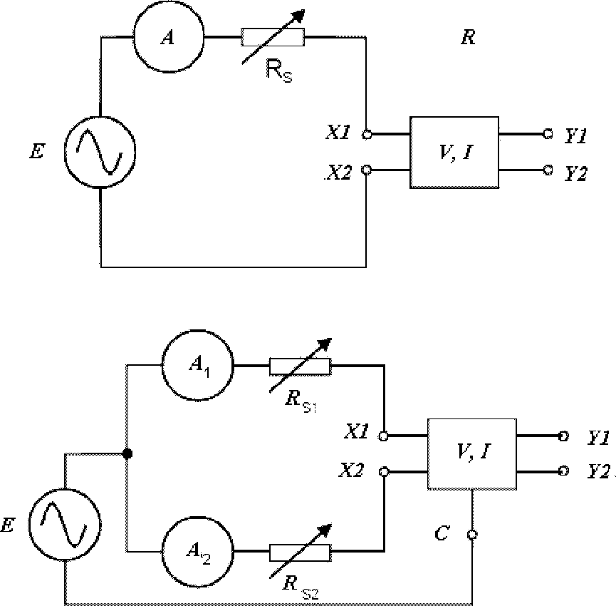 I - токоограничивающие компоненты; X1, X2 - выводы питания;