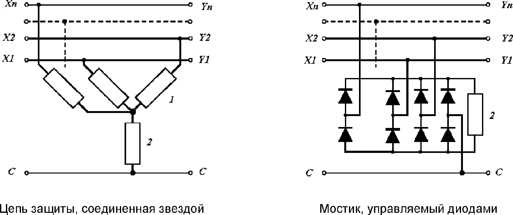 Y1, Y2 - защищенные выводы питания; C - общий вывод