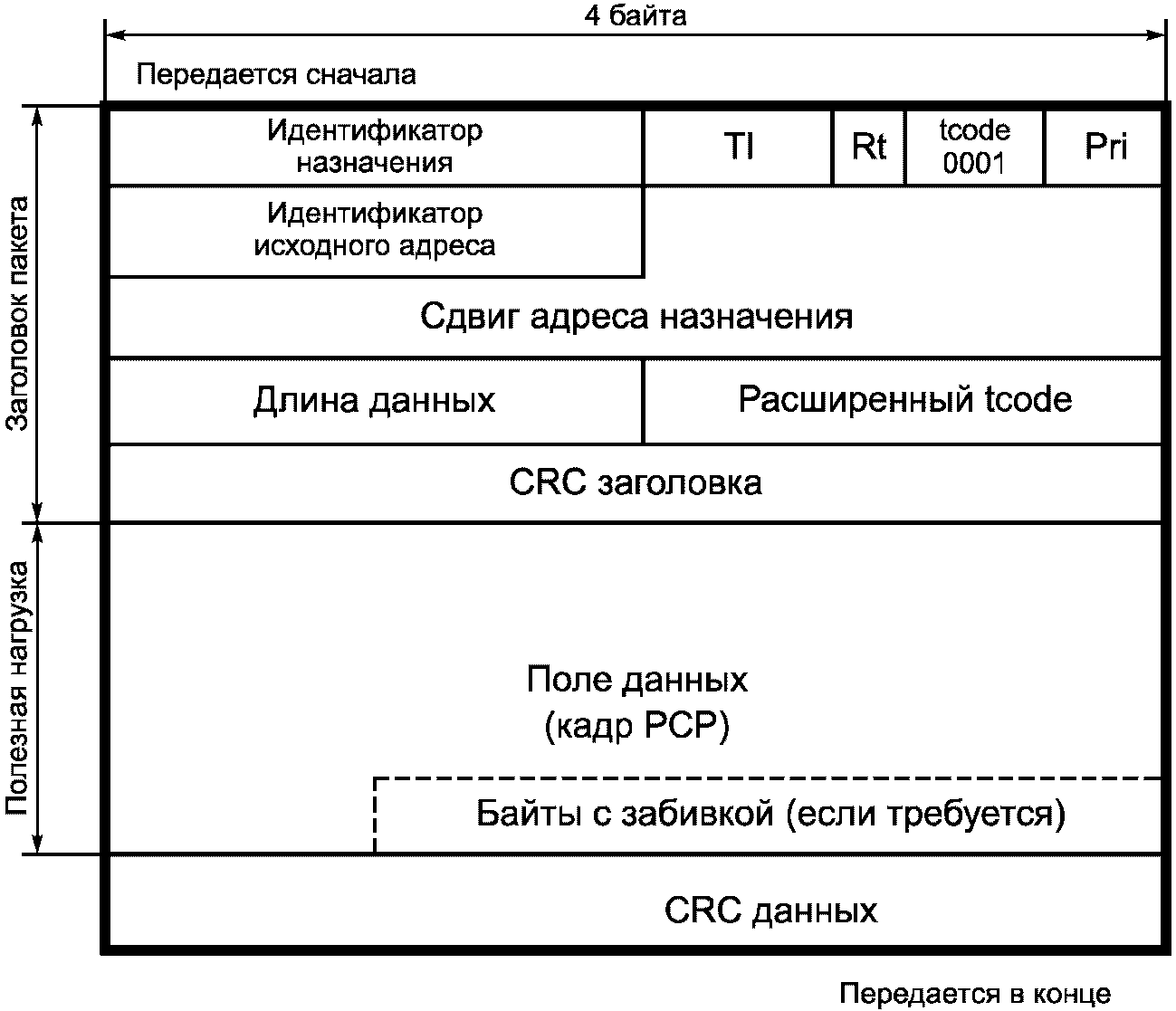 Структура асинхронного пакета, используемая для посылки кадра FCP, представлена на рисунках 30 и