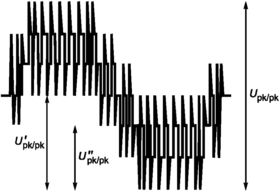Напряжения "фаза-фаза" и "фаза-земля", появляющиеся на зажимах машины для случая двухуровневого преобразователя, приведены на рисунке B.1. Отметим, что напряжение U