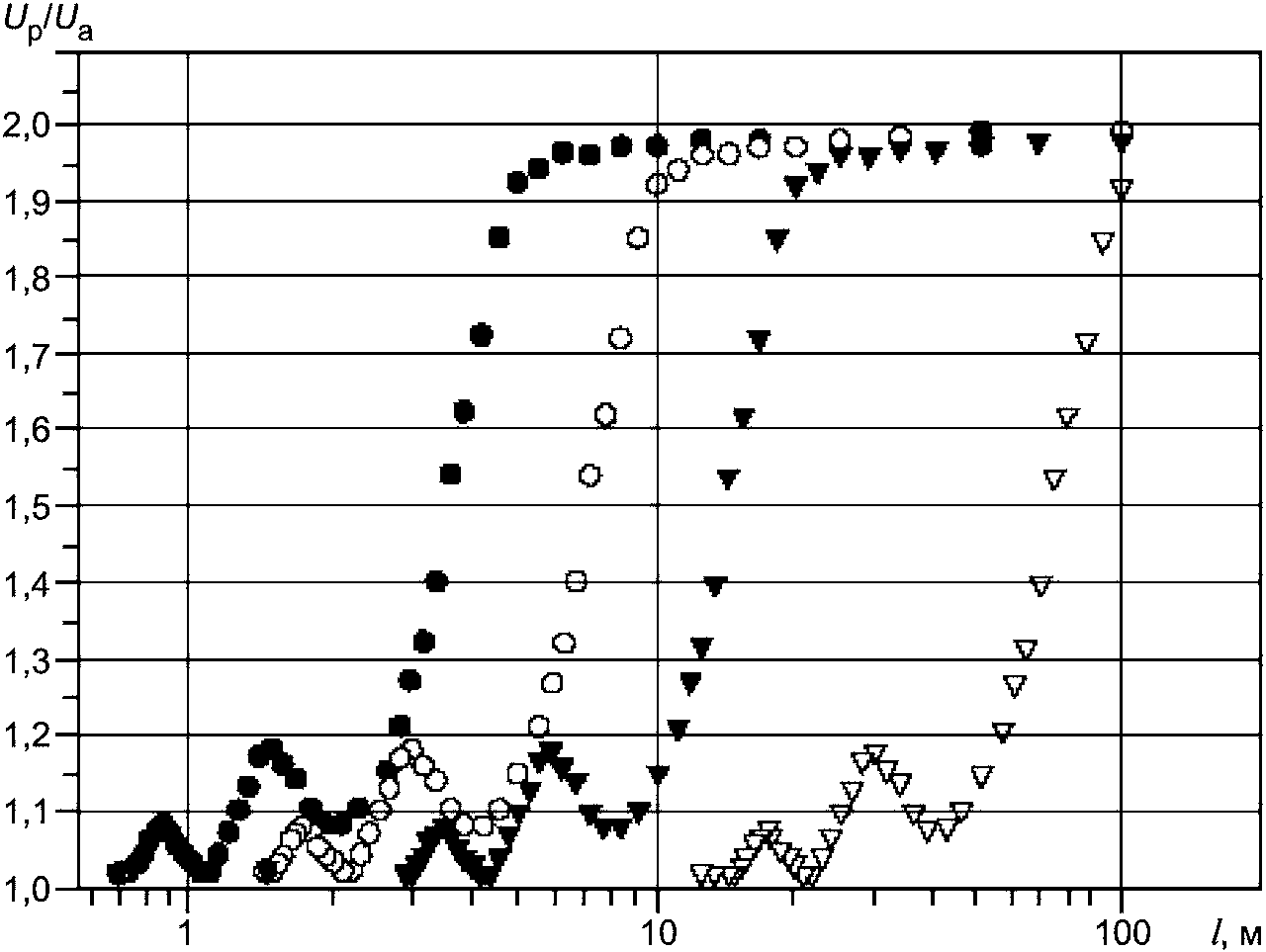 Трехуровневый преобразователь, выбранный в качестве примера, имеет частоту повторения импульсов 1 кГц, что является общепринятым. Вклад в процесс старения от импульсов преобразователя дается в процентах от общего старения изоляции для различных значений перенапряжений