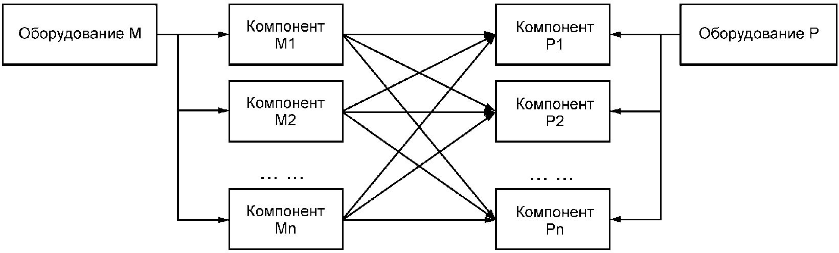 На основании идентифицированного оборудования должна быть создана матрица, которая отражает все потенциальные ситуации влияния помех между всеми образцами оборудования и/или изделиями как внутри, так и вне системы. В рамках этой матрицы должны быть рассмотрены все режимы работы и все виды связи.
