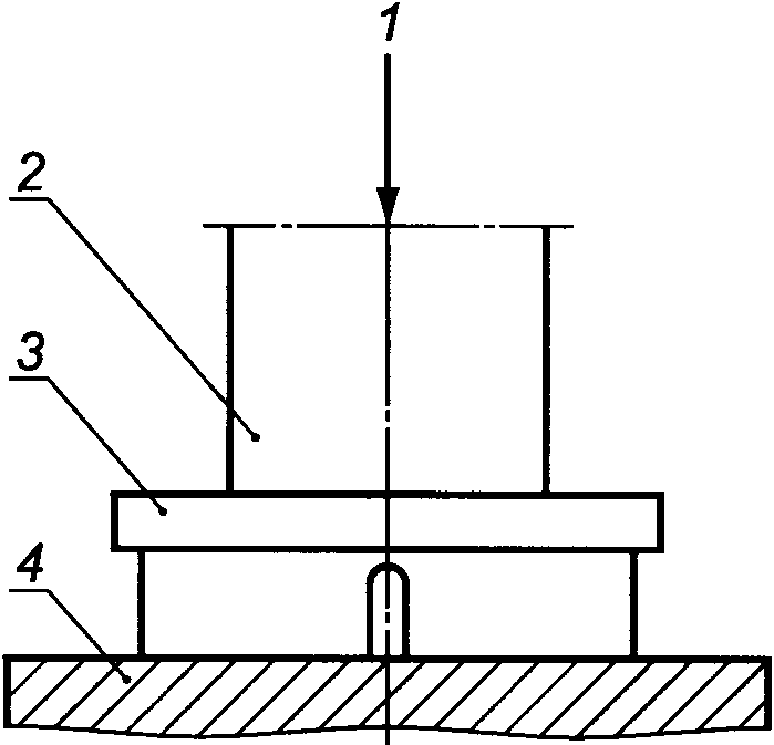Примечание - Для защиты опорной плиты допускается в качестве имитации образца использовать стальную плиту из твердой закаленной стали с известной зависимостью усилие-деформация.