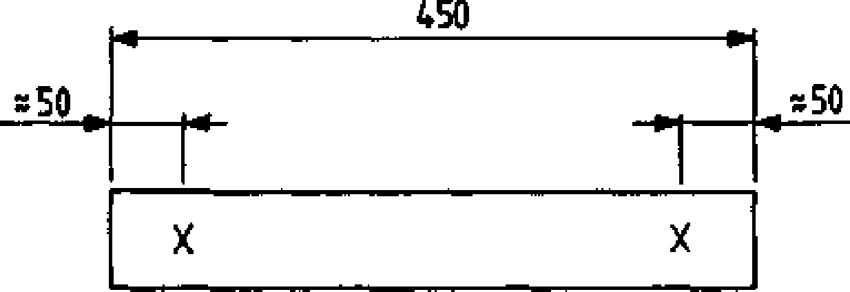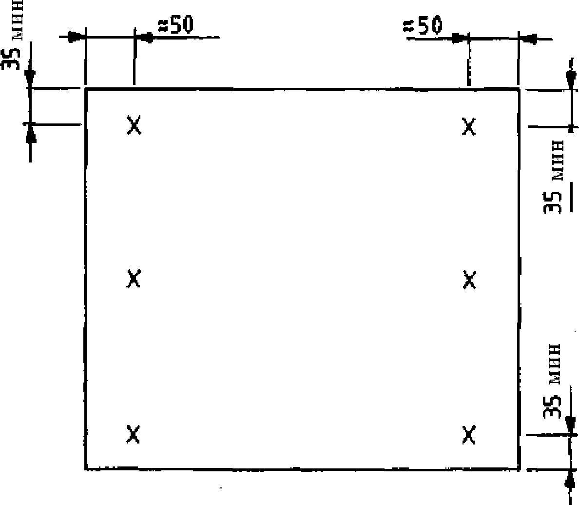 рисунке 2. Следят за тем, чтобы все точки были на удалении приблизительно 50 мм от края образца.