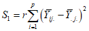 Между образцами | v1 = p - 1 | | MS1 = S1/v1 | F = MS1/MS2 |