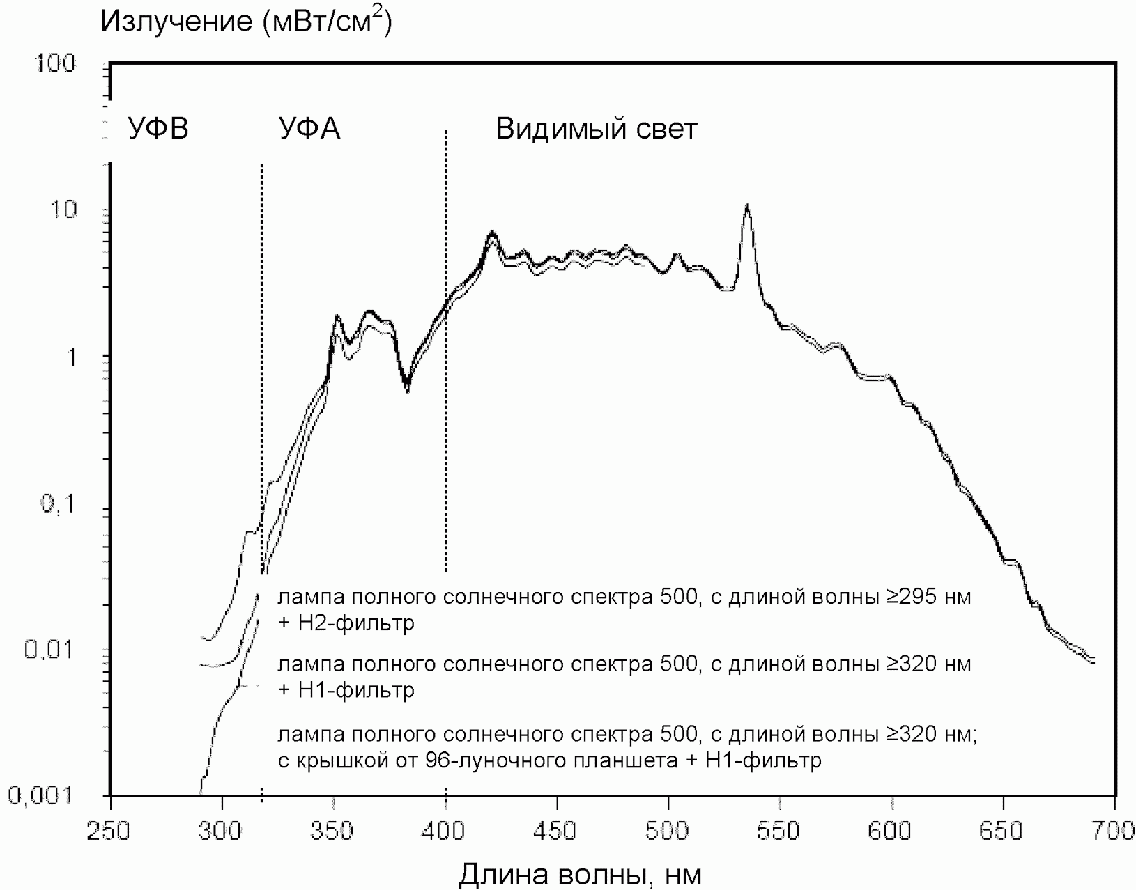 - продолжительность экспозиции УФ/видимого света;