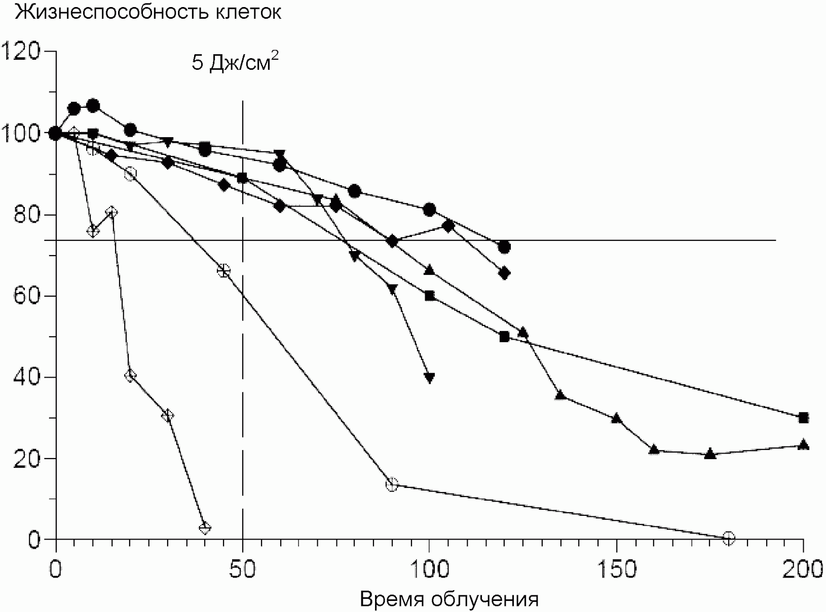 - абсолютная жизнеспособность (оптическая плотность экстракта нейтрального красного) облученных и необлученных клеток;