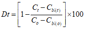 | Остаточное количество тестируемого вещества в конце теста | % первичной биодеградации |
