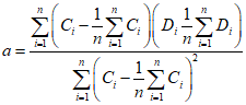 D = a·C + b,