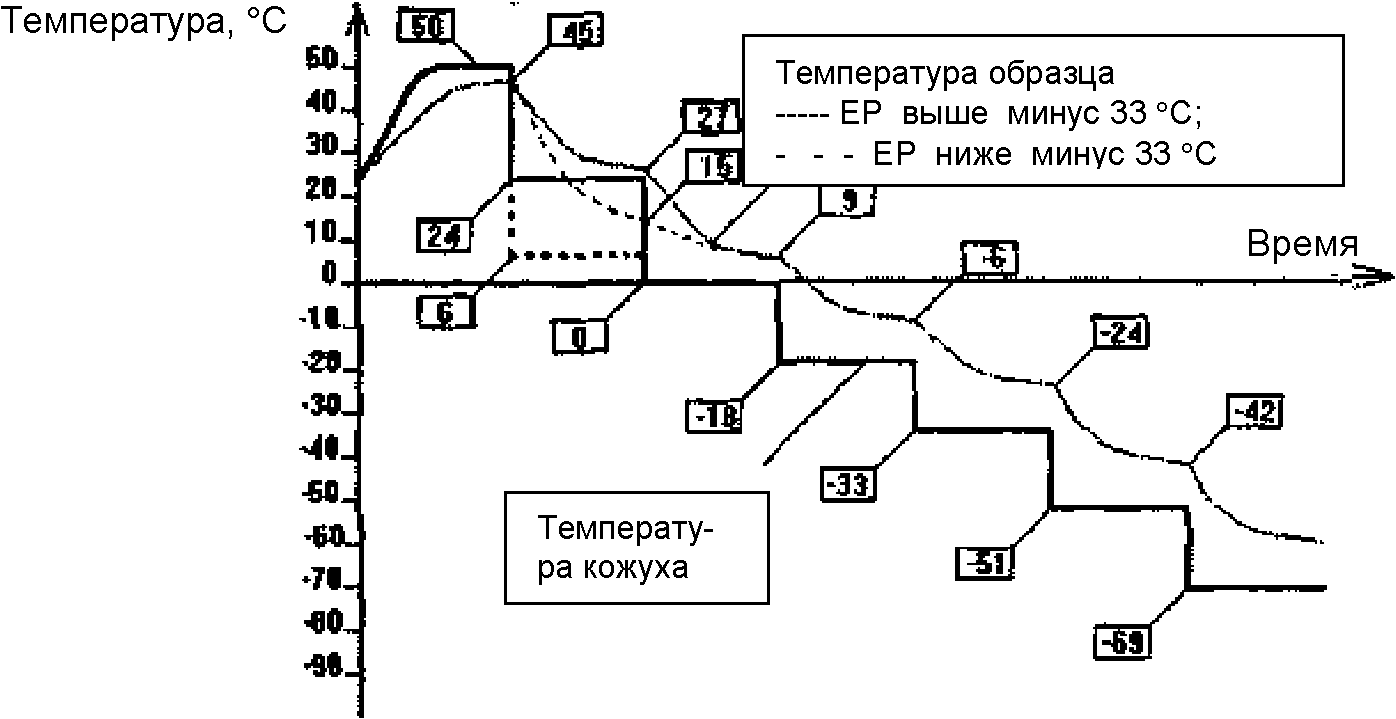 11.2.2 Если известно, что предполагаемая температура текучести (EP) выше минус 33 °C, нагревают испытуемый образец до предполагаемой температуры текучести (EP) 9 °C или не ниже 45 °C, но не выше 70 °C (см.