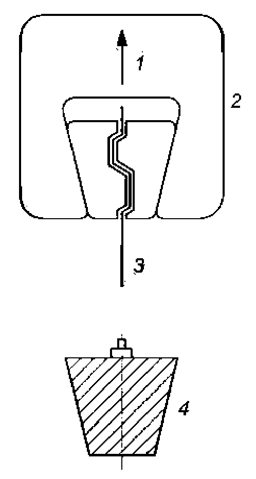 1 - направление прилагаемого усилия; 2 - зубчатый клин;