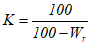 K - коэффициент пересчета массовой доли оксида кремния на его массовую долю в сухом материале, вычисленный по формуле