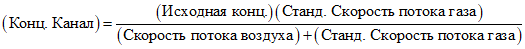 Например, при скорости потока 1 мл/мин стандарта концентрацией 10 ppmv, разбавленного потоком влажного воздуха скоростью 1000 мл/мин, конечная концентрация получается равной 10 ppbv: