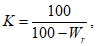 K - коэффициент пересчета массовой доли серы на массовую долю ее в сухом материале, вычисленный по формуле