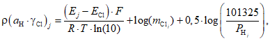 - коэффициент активности, моль/кг, ионов хлора;
