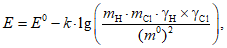 ЭДС E, мВ, ячейки определяют по уравнению