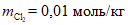 - моляльность раствора соляной кислоты HCl, равная 0,01;