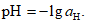 Величина pH соответствует отрицательному десятичному логарифму активности ионов водорода