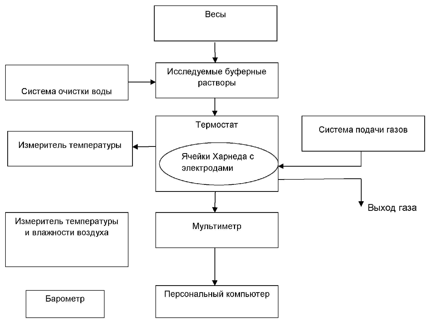 - подсоединяют к измерительной ячейке систему подачи водорода;