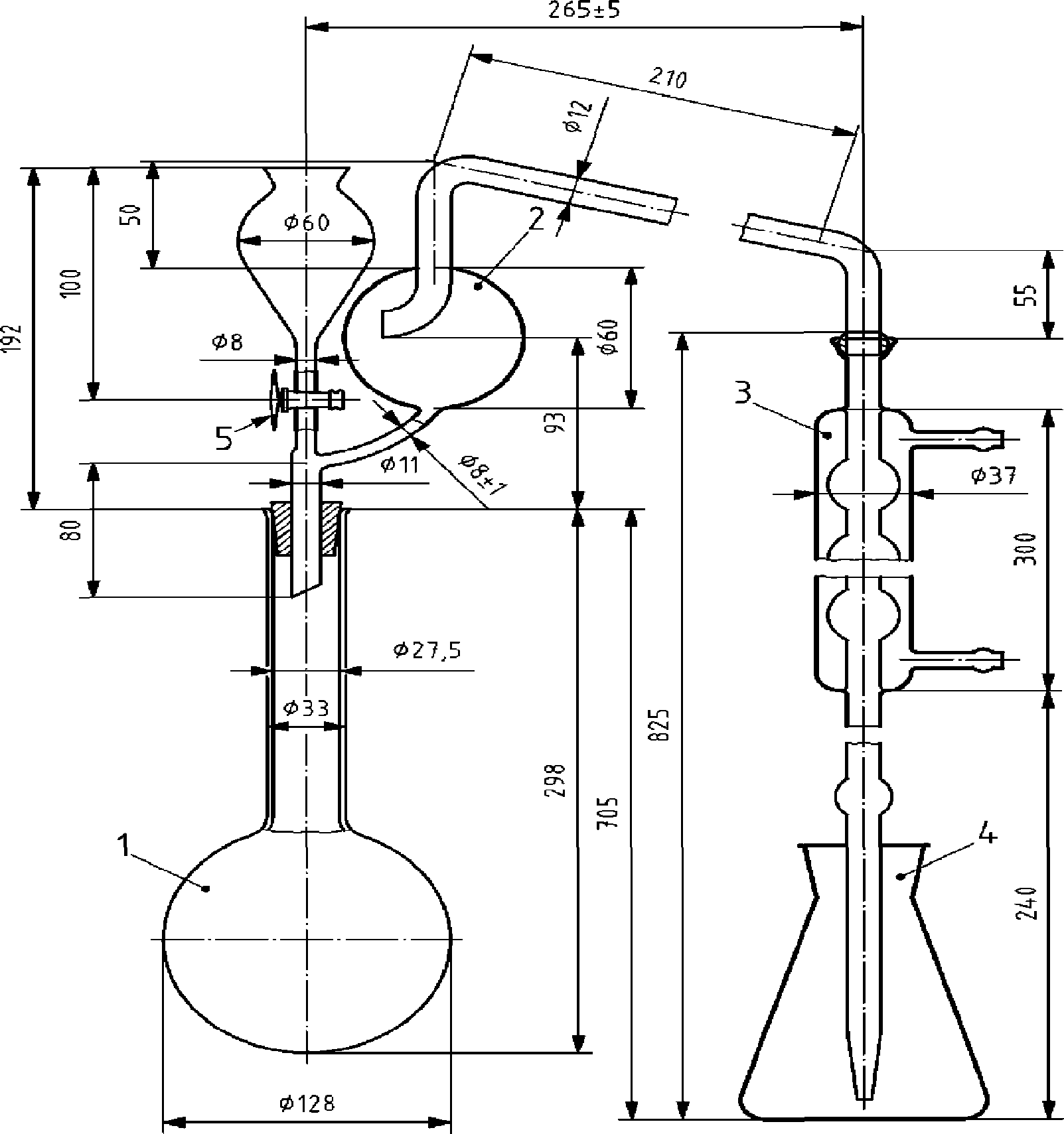 5.8.2. Конец удлинительной трубки холодильника должен быть ниже поверхности стандартной кислоты в приемной колбе.