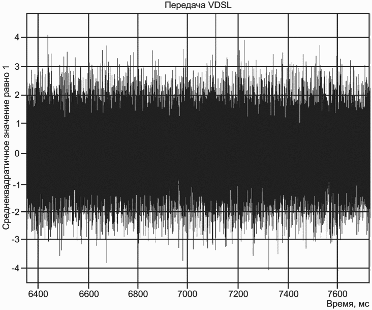 xDSL сигнал характеризуется амплитудой приблизительно 3 В (среднеквадратическое значение) (r. m. s.) с наложенными пиковыми отклонениями очень короткой длительности (около 1 мкс) и амплитудным значением, не превышающим 30 В.
