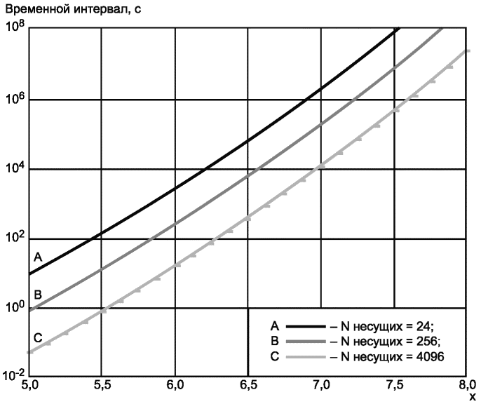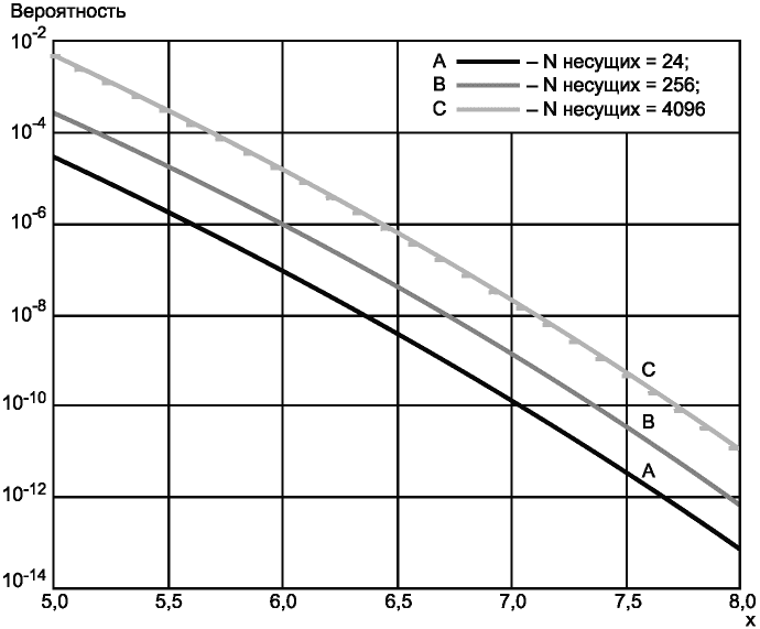 Для меньшего количества несущих верхний предел не определен (например, для 24 несущих, график на